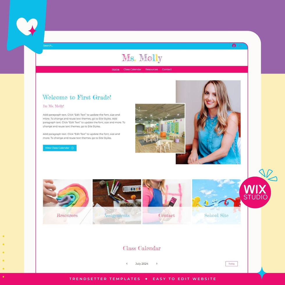 Transform your classroom's digital presence with the Ms Molly Wix Template – where organization meets inspiration!